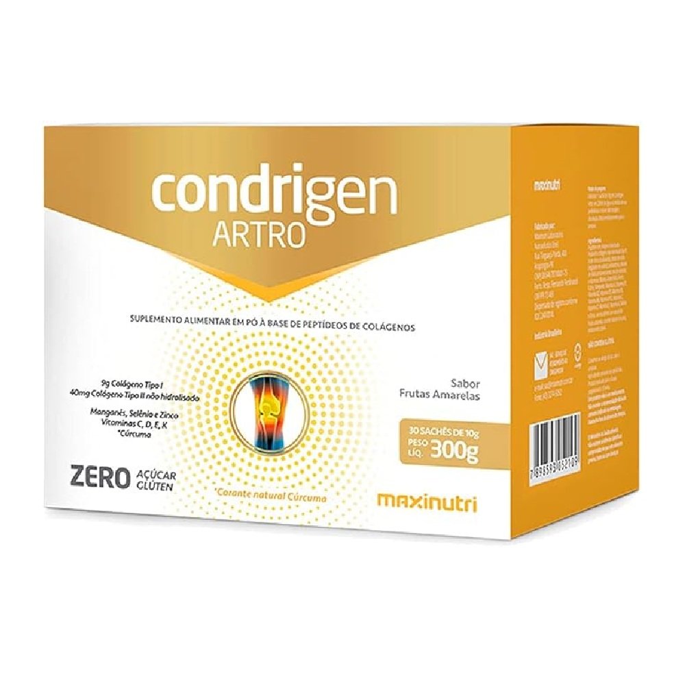 Condrigen Artro C/30 sachês foi desenvolvido especialmente para oferecer suporte à saúde das articulações e ao bem-estar geral. Contendo uma fórmula avançada com colágeno hidrolisado (9g) e colágeno tipo II não desnaturado (40mg), é ideal para promover a regeneração articular e reduzir desconfortos.